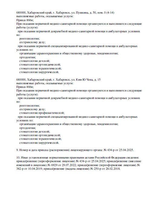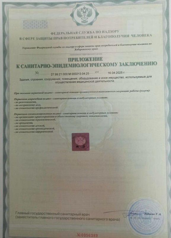 - Прошла обучение на базе Дальневосточного медицинского университета по специальности "стоматология профилактическая".